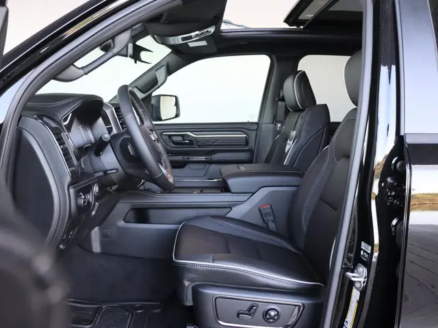 Met een auto als deze Dodge Ram 1500 komt u absoluut goed voor de dag. Een zescilinder motor en een automatische transmissie zorgen voor de uitstekende prestaties van deze auto. Ook op de minder vlakke wegen zoeft u lekker door dankzij de luchtvering. Het met leer beklede interieur is comfortabel en stijlvol. In dit voertuig hoeft u nooit meer kou te lijden dankzij functies als stoelverwarming en verwarmbare achterbank, evenals een verwarmbaar stuur. Fijn zo'n elektrisch bediend glazen panoramadak. Met een druk op de knop gaat de elektrische achterklep open. Bij de zeer complete uitrusting van deze auto behoren ook 20 inch lichtmetalen velgen, LED koplampen, geluidsisolerende ramen, elektrisch inklapbare buitenspiegels, in delen neerklapbare achterbank en treeplanken.De 360 graden camera biedt een beter zicht bij slechte weersomstandigheden, waardoor u beter kan anticiperen op mogelijke gevaren. Met adaptive cruise control houdt de auto zelfstandig afstand tot uw voorligger. Een veiligheidsverhogende optie waarmee u comfortabel onderweg bent. Spraakbediening herkent uw stem en voert opdrachten uit terwijl u beide handen aan het stuur houdt. De hoorbare sensatie van het high performance audiosysteem is een ervaring op zich. De kortste weg, de zuinigste weg, de snelste weg... elke weg is te vinden met het full map navigatiesysteem. Natuurlijk behoren automatische airconditioning, keyless entry en houtinleg in het interieur ook tot de uitrusting van deze complete auto.