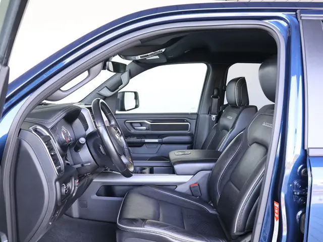 De kracht van Amerika verpakt in pure luxe deze Dodge Ram 1500 Laramie Sport combineert brute V8-prestaties met verfijnde afwerking en uitzonderlijk comfort. Uitgevoerd in de stijlvolle kleur Patriot Blue Pearlcoat, met zwarte 22 inch velgen en het kenmerkende Sport-exterieurpakket, straalt deze Ram kracht en klasse uit.Het interieur biedt alles wat je van een topuitvoering mag verwachten: geventileerde en verwarmde lederen stoelen, panoramaschuifdak, Alpine premium audio, navigatie met groot scherm en een riante Crew Cab met volop beenruimte.