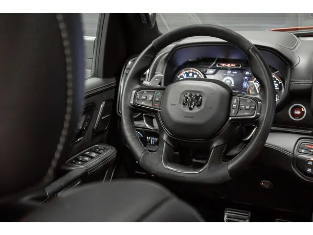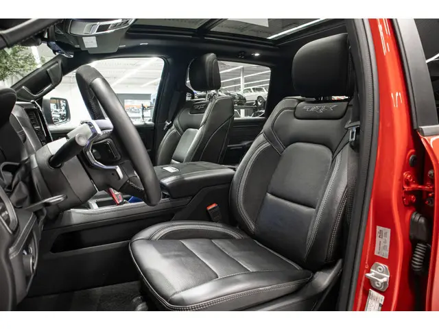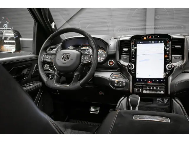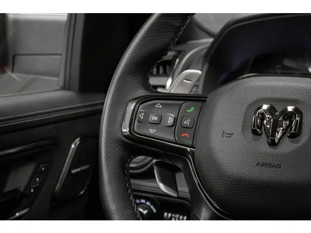 | Deze auto wordt consignatie verkocht en alleen op afspraak te bezichtigen |Hij is nét niet meer nieuw, dus komt-ie nu pas goed op toeren. Met alle pluspunten van een nagelnieuwe bolide. De aandrijving wordt verzorgd door een achtcilinder motor en een automatische transmissie. Van binnen is deze Dodge Ram 1500 mooi uitgevoerd met een classy lederen interieur. Je zult absoluut de luxe waarderen van de stoelverwarming, verwarmbare achterbank, en het verwarmbare stuur dat inbegrepen is in dit voertuig. Van binnen lijkt het allemaal uitermate ruim dankzij de vrije inval van daglicht via het elektrisch bediende glazen panoramadak. Natuurlijk behoren 20 inch lichtmetalen velgen, LED koplampen, geluidsisolerende ramen, elektrisch inklapbare buitenspiegels, in delen neerklapbare achterbank en treeplanken ook tot de uitrusting van deze complete auto.