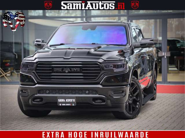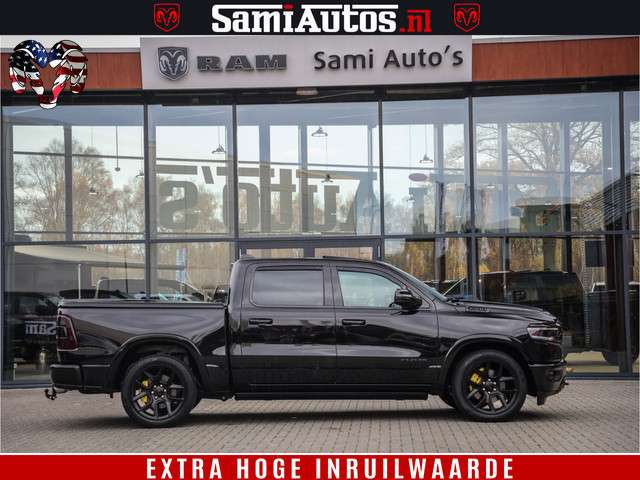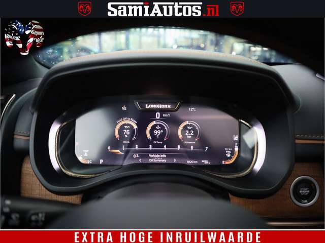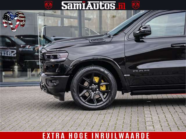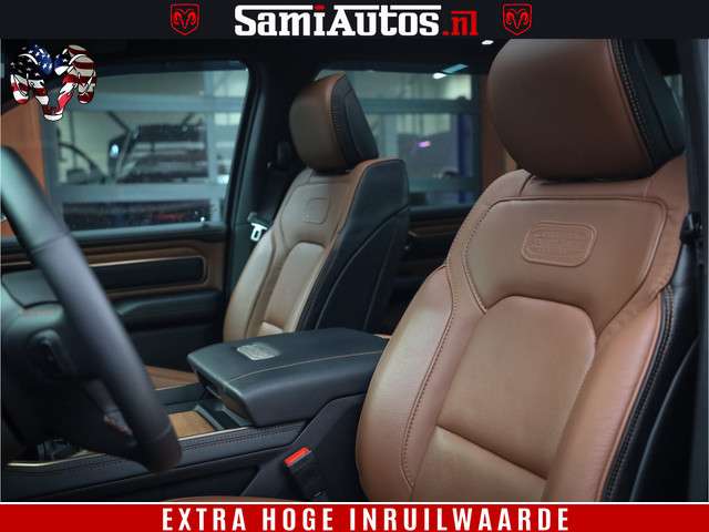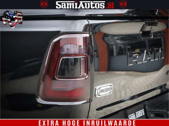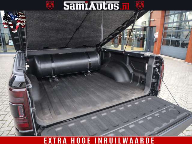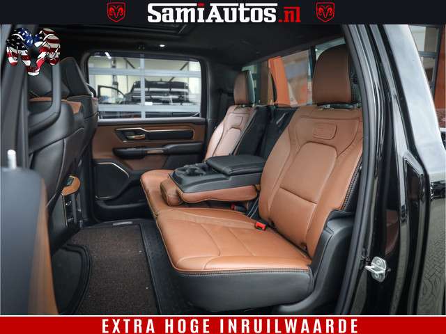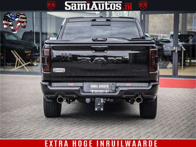 Dodge Ram BLACK OPS LONGHORN 5.7 V8 HEMI | 8820KM! | BOM VOL | HUD | LUCHTVERING | PANO | 200L LPG | ADAPTIVE CRUISE | DIGI VIRTUAL CLUSTER | CARPLAY | 3500KG | HEADUP | CREW CAB DUBBELE CABINE | 5 PERSOONS | ZWART MET BRUIN LEDER | Z.G.A.N
