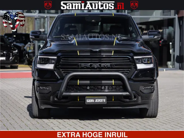 Origineel dealer geleverde RAM 1500 voorzien van vrijwel alle opties.Naast de opties. beschikt de auto over diverse accessoires als: Volledige striping, remklauw covers, Bullbar en wide bodykit twv €6000,-