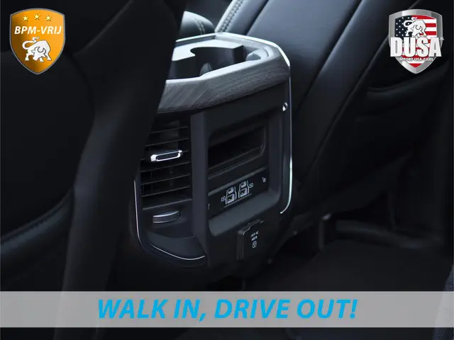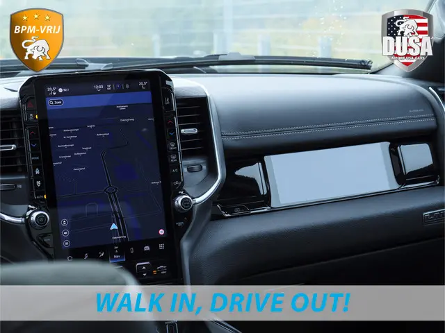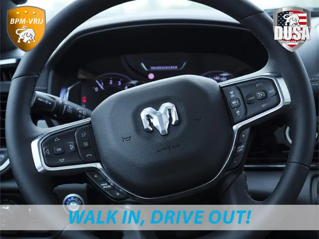 U rijdt gemakkelijk, comfortabel en zonder zorgen in de vernieuwde 2025 RAM 1500 Laramie. U kunt deze nieuwe auto nu direct verkrijgen, want hij is op voorraad. In deze auto vindt u de nieuwe twin-turbo inline-six benzinemotor en een automatische transmissie. Onze adviseurs vertellen u graag alles over deze nieuwe aandrijving! Het lederen interieur ademt luxe, en het zit uiteraard fantastisch. Zit u goed? De stoelen zijn eenvoudig instelbaar dankzij de elektrische bediening met geheugen. Het wijdse uitzicht door het glazen panorama dak maakt van elke rit een belevenis. Waarom zou je alleen voorin behaaglijk mogen zitten? Daarom is er óók een verwarmde achterbank. Bij de rijke uitrusting horen ook 22 inch lichtmetalen velgen, LED koplampen, elektrisch inklapbare buitenspiegels en treeplanken.Met een gerust hart achteruitrijden? Dat kan, dankzij de achteruitrijcamera. Adaptive cruise control is een comfortabele en veilige optie. Het systeem reguleert de snelheid en houdt automatisch afstand tot uw voorligger. De geluidsinstallatie van Harman/Kardon verandert het interieur in een concertzaal. Met de routebegeleiding van het navigatiesysteem kunt u zich volledig op het verkeer concentreren. Veilig en handig: het audiosysteem laat zich bedienen vanaf het stuur. Wat u ook in deze auto kunt vinden zijn Harman Kardon-audiosysteem, keyless entry, automatisch dimmende binnenspiegel, lederen stuur en centrale deurvergrendeling met afstandsbediening.