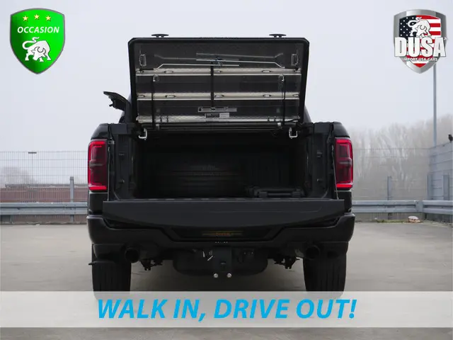 Qua leeftijd komt deze Dodge RAM net kijken. Frisse kilometerstand, laatste technologie, actuele snufjes. Net niet nieuw, en dus heel betaalbaar! Hoewel de auto uit 2024 komt, heeft hij maar 15000 kilometer gereden. De automatische transmissie en de zescilinder benzinemotor maken het autorijden snel en comfortabel. Bestuurder en bijrijder krijgen een warm welkom: de verwarmbare voorstoelen zijn bovendien voorzien van massagefunctie. Neem plaats op de comfortabele stoelen. Dankzij de elektrische bediening en het geheugen is het eenvoudig om hierin de beste zitpositie te vinden. Het glazen panoramadak geeft u een ongekende rijsensatie: wat een licht en zicht! Koude handen? Da's voorbij met het verwarmd stuurwiel. Pak aan! Tot de uitrusting van deze Dodge behoren ook 22 inch lichtmetalen velgen, LED-dagrijverlichting, getint glas, in delen neerklapbare achterbank, treeplanken en LPG-installatie.U leest alle belangrijke functies helder af dankzij het digitale dashboard. De 360 graden camera biedt een beter zicht bij slechte weersomstandigheden, waardoor u beter kan anticiperen op mogelijke gevaren. Sublieme sound aan boord is niet vergeten. Het Harman/Kardon audiosysteem pakt op verzoek fenomenaal uit. Soms heeft u meer parkeerruimte dan u denkt. Maar soms ook niet. De parkeersensoren vertellen precies hoeveel. De cruise control geeft elke flitser het nakijken. U bent in deze Dodge ook voorzien van Harman Kardon-audiosysteem, navigatiesysteem, keyless entry, automatisch dimmende binnenspiegel, isofix-aansluiting en centrale deurvergrendeling met afstandsbediening.