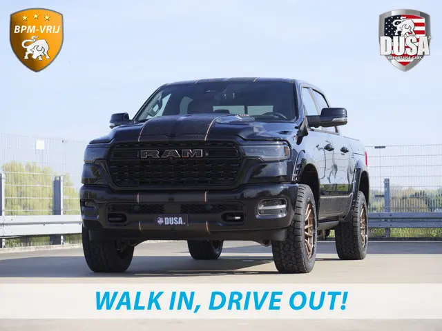 Bij het ontwerpen van de vernieuwde Dodge RAM Limited stonden uw comfort en uw veiligheid centraal. U hoeft niet langer te wachten, deze splinternieuwe auto is nu direct beschikbaar Dankzij de zescilinder motor en de automatische transmissie, is het autorijden snel en comfortabel. Hoe luxueus is het om tijdens de winter een verwarmde auto te hebben door de stuurverwarming, stoelverwarming met massagefunctie en verwarmbare achterbank. Dankzij de elektrische stoelbediening is het gemakkelijk om de optimale zitpositie te vinden. Geniet van de lichtinval en het uitzicht van het grote glazen panoramadak. Bij de rijke uitrusting horen ook 22 inch lichtmetalen velgen, LED-koplampen, getint glas en treeplanken.De 360 graden camera wordt mogelijk gemaakt door vier camera's die tezamen werken om zo een uitgebreid zicht te bieden, wat van grote waarde is bij het navigeren door smalle straatjes en parkeerplekken. Adaptive cruise control is veilig en comfortabel. De snelheidsregelaar houdt automatisch afstand tot het voertuig dat voor u rijdt. Dromerige achtergrondmuziek voor een relaxte rit? Het Harman/Kardon audiosysteem weet er net zo goed raad mee als met stevige beats om lekker bij door te rijden! Je weet altijd waar je moet zijn, dankzij het navigatiesysteem. Harder en zachter met een druk op de knop: de audiobediening op het stuurwiel maakt het mogelijk. En deze auto heeft ook Harman Kardon-audiosysteem, isofix-aansluiting en centrale portiervergrendeling als standaard uitrusting.