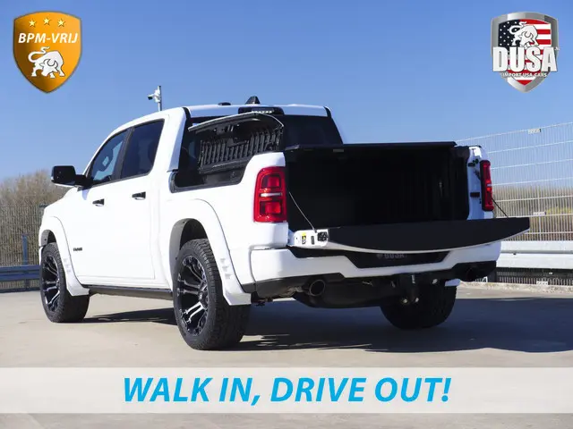 Ontspannen en zorgeloos autorijden, dat doet u met deze Dodge RAM. U hoeft niet langer te wachten, deze splinternieuwe auto is nu direct beschikbaar De krachtige benzinemotor staat garant voor uitstekende prestaties. U past de stoelen moeiteloos aan, ze zijn elektrisch in te stellen en hebben bovendien een geheugen. De achterbankverwarming, het verwarmbare stuurwiel en de verwarmbare voorstoelen brengen passagiers en bestuurder snel weer op temperatuur, ongeacht hoe koud het buiten is. Met het grote glazen panoramadak voelt het alsof u in een cabrio zit. Tot de uitrusting behoren ook 22 inch lichtmetalen velgen, LED-koplampen, elektrisch inklapbare buitenspiegels, getint glas en treeplanken.Adaptive cruise control is veilig en comfortabel. De snelheidsregelaar houdt automatisch afstand tot het voertuig dat voor u rijdt. Van A naar B zonder omwegen: altijd uw eigen navigatiesysteem aan boord! Voor de belangrijkste functies van het geluidssysteem hoeft u uw blik niet van de weg te halen. De audiobediening bevindt zich op het stuur. Muziek vanaf uw telefoon draadloos afspelen via de autoradio? Met bluetooth met audiostreaming heeft u altijd uw favoriete muziek bij de hand. Makkelijk en veilig is de keyless start. Met de elektronische sleutel op zak start u de auto met enkel een druk op de knop. Extra opties op deze auto zijn: isofix-aansluiting en centrale portiervergrendeling.