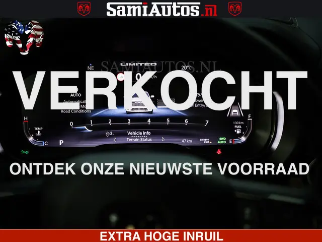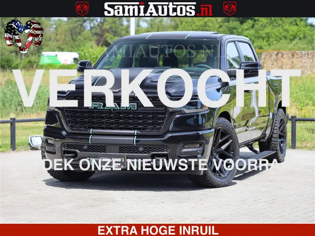 Dodge Ram Limited Night High Output 540HP 706Nm | Massage + Full Option | De Meest Luxe en Volle Pick-Up in zijn Klasse | Comfortabele Dubbele Cabine met Royale 5 Zitplaatsen | BPM vrij | Nu Leverbaar uit Voorraad | Voorraad Nr 2350 - 5181