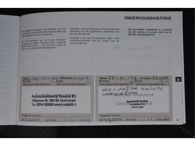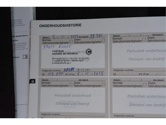 Onderhoudsboekjes: Aanwezig