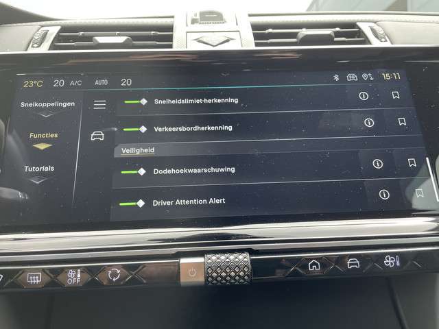De automatische veiligheidssystemen in deze DS fungeren als een extra paar ogen. En dat niet alleen, ze kunnen ook actief ingrijpen, om zo u en uw passagiers te beschermen. Een belangrijke bijdrage aan de veiligheid onderweg levert de verkeersbord-detectie. Met het Lane-keeping systeem komt u nooit per ongeluk buiten de rijstrook. Op een kop-staartbotsing zit niemand te wachten. Daarom is de forward collision warning onderweg constant alert en berekent via een sensor de veilige afstand tot voorliggers. U bent mede dankzij dodehoekdetectie, hill hold functie, vermoeidheidsherkenning, autonoom remsysteem en bandenspanningcontrolesysteem steeds veilig onderweg.