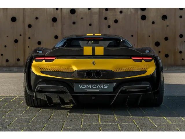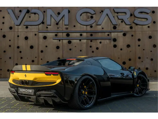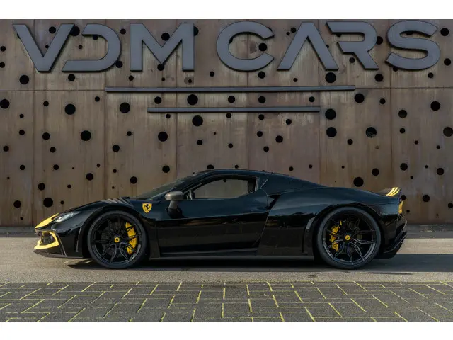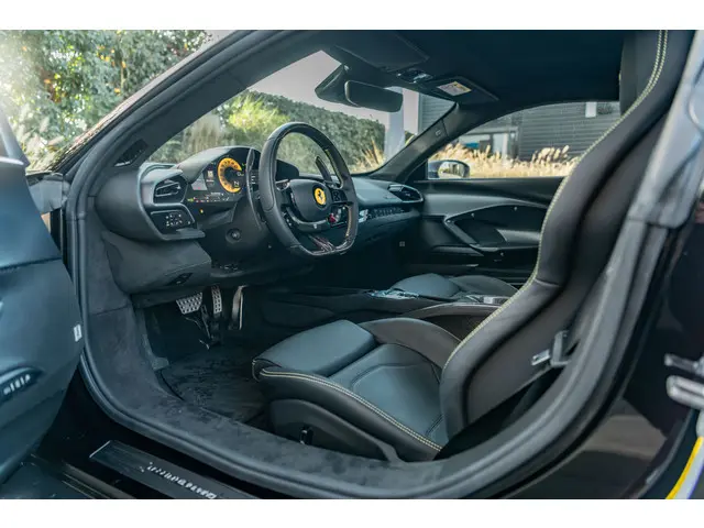 Een zeldzame verschijning: deze Ferrari 296 GTB N-Largo, voorzien van het Assetto Fiorano pakket, in het diepzwarte Nero DS 1250 gecombineerd met een Giallo Modena racing livery. De N-Largo-uitvoering staat garant voor extreme exclusiviteit en een gelimiteerde oplage – een zeldzaamheid die slechts voor enkelen is weggelegd. De verbrede carrosserie, gecombineerd met de Giallo Modena livery en Painted Shields, maakt dit tot een prachtig Novitec N-LARGO exemplaar. Uitgevoerd met een zwart lederen interieur voorzien van volledig elektrische comfortstoelen en een hoogwaardig carbonpakket, straalt dit gelimiteerde exemplaar pure sportiviteit en verfijning uit. Een zeldzame kans om een gelimiteerde Ferrari 296 GTB N-Largo te bezitten in een uiterst stijlvolle en krachtige configuratie.