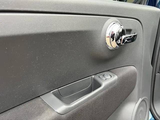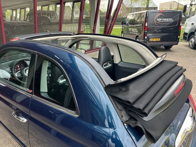 Super leuke Fiat 500 in de luxe cabrio-uitvoering. De combinatie van petrol-blue metallic lak, zwarte stoffen cabriokap, spaakvelgen en het zwarte lederen interieur maken het een chique-sportieve verschijning.Met de 70 pk sterke viercilinder motor kun je probleemloos mee in het stadsverkeer maar ook op de snelweg staat hij zijn mannetje.