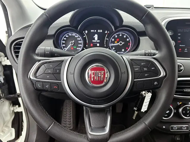 Hij zorgt voor een ontspannen rijervaring, deze Fiat 500 X. Het is een auto uit 2021. De aandrijving van deze Fiat wordt verzorgd door een viercilinder benzinemotor en een automatische transmissie. U wordt in deze auto ook getrakteerd op 17 inch lichtmetalen velgen, LED-dagrijverlichting, extra getint glas, in delen neerklapbare achterbank en snelheidsafhankelijke stuurbekrachtiging.De jeugd is niet los te maken van hun smartphone, en dat zie je ook aan deze jonge auto. Via een speciale app staat u overal en altijd in contact met uw vierwieler. Superhandig! Een belangrijke veiligheidsvoorziening is de bediening van het audiosysteem via knoppen op het stuur. Dab-ontvangst geeft daarbij een kraakheldere ontvangst. Met de hulp van de parkeersensoren kost inparkeren en uitparkeren u geen enkele moeite. Het drukke verkeer eist onderweg al uw aandacht op. Daarom is het goed dat deze Fiat is voorzien van diverse systemen die u assisteren tijdens de rit. Een automatisch inschakelbare verlichting neemt het waar als het donker wordt of gaat schemeren, en schakelt dan automatisch de verlichting in. Op dezelfde manier "ziet" de regensensor de eerste spatjes regen en schakelt dan de ruitenwissers in, en als het harder gaat regenen zet hij de ruitenwissers ook in een snellere stand. De cruise control zorgt voor een prettige, gelijkmatige koers en minder brandstofgebruik. U bent in deze Fiat ook voorzien van airconditioning, lederen stuur, isofix-aansluiting, centrale deurvergrendeling met afstandsbediening, boordcomputer en lederen versnellingspook.