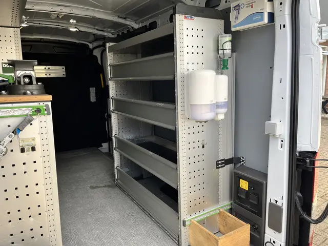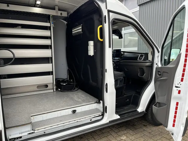 Ford Transit 350 L3H2 Trend 68 kWh Kastinrichting Werkplaatsinrichting Airco Cruise controle 360° Camera Navigatiesysteem Telefoonverbinding Parkeersensoren voor en achter 2-Persoons Oplaadkabels Stoelverwarming Bottinrichting