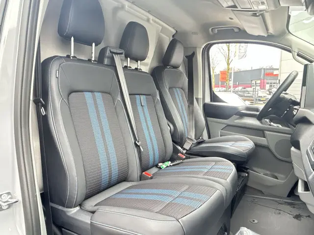 Ford Transit 340 L2H1 Sport 71 kWh 2x schuifdeur, LMV 19'', navigatie, laadvloer, trekhaak, camera Snel leverbaar