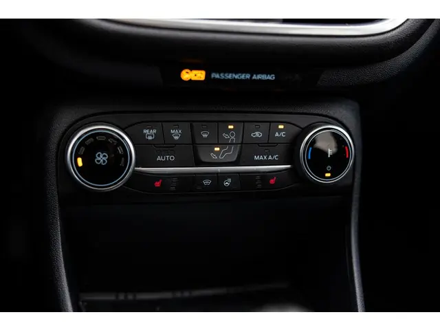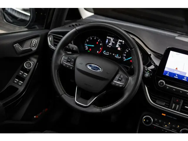 Ford huldigt het principe 'Go Further'. En dat betrekken ze ook op hun auto's zelf. Zuinig in brandstof, innovatieve toepassingen - Ford heeft veel te bieden. De aandrijving van deze Ford wordt verzorgd door een driecilinder motor en een handgeschakelde zesversnellingsbak. Op koude en donkere dagen zijn de verwarmbare voorstoelen een uitkomst. Uitstekende zitsteun en een strakke look? Daar zorgen de sportstoelen voor! Wat een licht geeft dat glazen elektrisch bedienbare panoramadak. Tot de uitrusting van deze Ford behoren ook 15 inch lichtmetalen velgen, LED koplampen, in delen neerklapbare achterbank en LED-achterlichten.Een smartphone met internetverbinding legt eenvoudig overal contact met de auto. U kunt functies activeren en de conditie van de auto monitoren. De geluidskwaliteit aan boord is 'next level' dankzij het high performance audiosysteem. Gedoe met kabels en stekkers in de sigarettenaansteker is voorbij. De aanwezige draadloze oplaadmogelijkheid voor telefoons zorgt voor wireless recharging van uw smartphone. De achteropkomend verkeer waarschuwing bewaakt de afstand tot achterliggers en geeft een signaal als er te weinig ruimte is. Het comfort wordt verhoogd door de aanwezige automatische airconditioning. En dan is deze auto ook nog eens voorzien van dashboard met spraakbediening, navigatiesysteem, WIFI-hotspot, DAB ontvangst, parkeersensoren achter en regensensor.