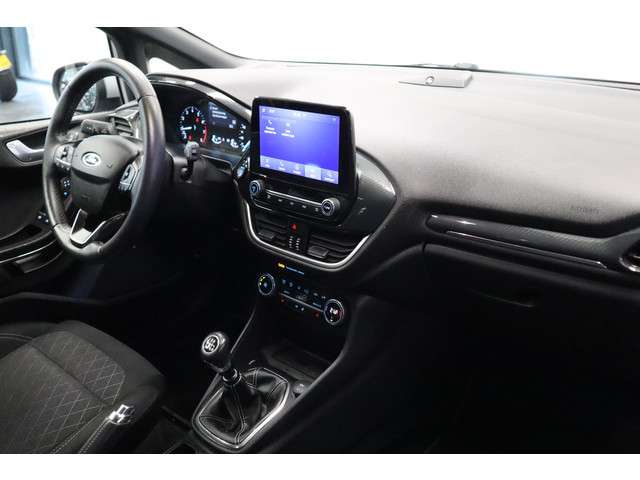 Alle technologie in de Ford Fiesta is er op gericht om uw rit veilig en gemakkelijk te laten verlopen. Dit mooie exemplaar uit 2020 heeft 102916 kilometer op de teller staan. De aandrijving komt voor rekening van een benzinemotor en een handgeschakelde zesversnellingsbak. Ervaar de weldadige warmte van de inschakelbare stoelverwarming. De uitmonstering van deze auto wordt gecompleteerd door onder meer 17 inch lichtmetalen velgen, led-koplampen, in delen neerklapbare achterbank, LED-achterlichten en verstelbare lendensteunen.Kom maar, kom maar, kom maar... ho! Prettig hoor, zo'n achteruitrijcamera. Adaptive cruise control is een comfortabele en veilige optie. Het systeem reguleert de snelheid en houdt automatisch afstand tot uw voorligger. Spraaksturing betekent dat u verschillende functies met uw stem kunt bedienen. Vanaf elke plek contact maken met deze auto: dat kan met behulp van remote services, die u simpel activeert met uw smartphone. Het high performance audiosysteem produceert krachtige bassen en heldere hoge tonen. De uitrusting van deze Ford is met full map navigatiesysteem, WIFI-hotspot, achteropkomend verkeer waarschuwing, dual zone automatische airconditioning, draadloos opladen en DAB ontvangst behoorlijk compleet.