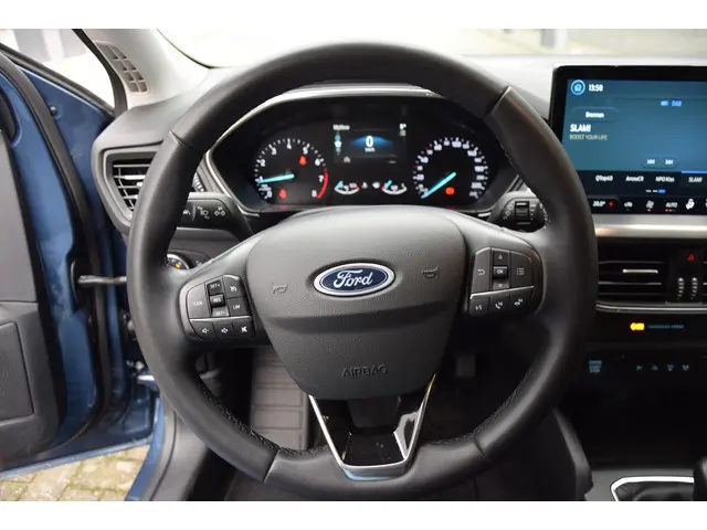 Techniek en design helemaal van nu. Kilometerstand van gisteren. Deze bijna-nieuwe Ford Focus Wagon heeft z'n nestveren afgeschud en is klaar om te vliegen. Met zijn benzinemotor en handgeschakelde zesversnellingsbak is dit een prima auto voor nog vele kilometers. De sportstoelen houden u en uw bijrijder goed op z'n plek tijdens het accelereren en bij het nemen van scherpe bochten. De uitmonstering van deze auto wordt gecompleteerd door onder meer 16 inch lichtmetalen velgen, Full LED koplampen, geluidsisolerende ramen, in delen neerklapbare achterbank, LED-achterlichten en verstelbare lendensteunen.Navigatie, onderhoudsstatus, vergrendeling, audio... de mogelijkheden van remote services zijn haast oneindig. Ook deze auto laat zich bedienen en analyseren via uw smartphone! Het infotainmentaanbod is zeer uitgebreid. Ontspannen reizen doet u met behulp van het full map navigatiesysteem terwijl u muziek afspeelt via het audiosysteem met DAB-radio. U verwacht natuurlijk automatische airconditioning in deze auto, en die is er dan ook. U kunt bij het inparkeren natuurlijk niet aan alle kanten ogen hebben. Daarom is deze Ford Focus Wagon voorzien van parkeersensoren! De auto neemt u werk uit handen doordat hij zelf veel in de gaten houdt. Een regensensor en een automatisch inschakelbare verlichting nemen waar wanneer de ruitenwissers en het licht aan moeten. Ook dashboard met spraakbediening, automatisch dimmende binnenspiegel, lederen stuur, bagage afdekhoes en lederen versnellingspook zijn aan boord.