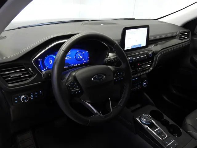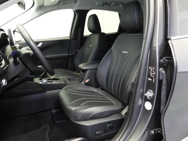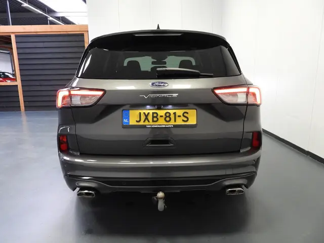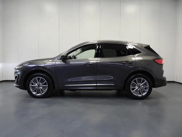 Rijden als nieuw? Dan is deze Ford Kuga een fantastische buitenkans. Prille cijfers op de teller, piepjong ogend, verbluffend actueel in extra's en opties... Deze Ford Kuga heeft het allemaal! Deze auto is bijna nieuw, ondanks dat hij uit 2022 komt; hij heeft slechts 21187 kilometer afgelegd. De aanwezige hybride motor is een slimme extra. Tijdens het rijden en remmen laadt de accu bij, zodat de elektromotor de brandstofmotor kan ondersteunen of het zelfs helemaal overnemen. Dat scheelt in kosten! De lederen bekleding benadrukt de luxe uitstraling van deze auto. Voorzien van zowel stoelverwarming, verwarmbare achterbank alsook een verwarmbaar stuur, zorgt dit voertuig voor uitstekend comfort tijdens koude dagen. De sportstoelen zien er niet alleen prachtig uit, maar zijn ook functioneel, zoals u kilometer na kilometer zult merken. Een praktische extra is de elektrisch bedienbare achterklep die opent en sluit met een druk op de knop. De uitmonstering van deze auto wordt gecompleteerd door onder meer 18 inch lichtmetalen velgen, LED koplampen, geluidsisolerende ramen, in delen neerklapbare achterbank, LED-achterlichten en sportuitlaat.Een gevisualiseerd overzicht van alle belangrijke functies wordt geleverd door het digitale dashboard. Met de achteruitrijcamera ziet u wat er achter de auto gebeurt. Zo rijdt u moeiteloos achteruit. Met adaptive cruise control houdt deze auto automatisch afstand tot uw voorligger. Uw smartphone wordt een dashboard, met alle functies in beeld. Dankzij Connected Services en de speciale app. Bij de luxe van deze auto hoort ook climate control. Wat u ook in deze auto kunt vinden zijn dashboard met spraakbediening, full map navigatiesysteem, DAB ontvangst, regensensor, keyless entry en automatisch dimmende binnenspiegel.