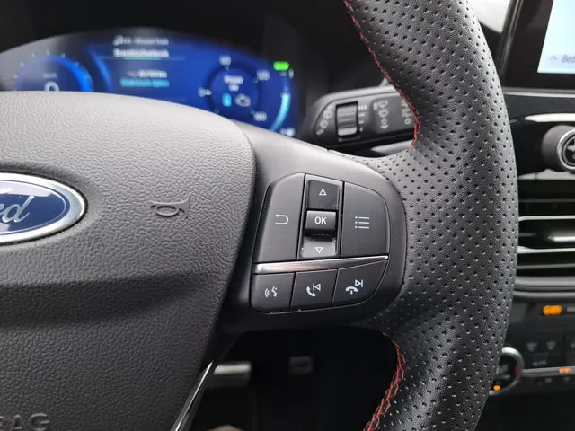 Ford Kuga 2.5 PHEV Plug in hybride ST Line automaat afkomstig van de 1e eigenaar. Volledige onderhoudshistorie is aanwezig. Sportieve ST Line uitvoering met winterpakket, sportstoelen afgewerkt met rode stiksels, afgevlakt lederen sport stuur met stuurwielverwarming, stoel verwarming, Keyless entry, Apple Carplay Android Auto, achteruitrijcamera, zwarte hemelbekleding, DAB digitale radio, LED verlichting, navigatiesysteem, cruise control, climate control, parkeersensoren voor en achter, lichtmetalen velgen 18 inch etc. Inruil en financiering is mogelijk bij Mensink auto. Voor meer informatie bel 0653617098 of zie de website www.mensinkauto.nlMeer informatie