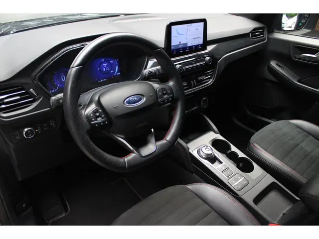 Dit betreft een schittrende Ford Kuga 2.5 PHEV ST-Line X. Deze dealer onderhouden auto is zo goed als nieuw en afkomstig van de 1e eigenaar. Complete onderhoudsdocumentatie is aanwezig. Ook berust er een fiscaal voordeel op deze Ford voor de zakelijke rijder, dit betreft namelijk een BTW auto!Goede prestaties, aantrekkelijke extra's en perfect onderhouden: deze Ford Kuga stelt zich graag aan u voor! Elektrisch rijden: zuinig, goedkoop en schoon. Maar soms net wat beperkt als het gaat om afstand. Daarom heeft deze hybride Ford Kuga zowel een verbrandingsmotor als een elektromotor. Als dat geen perfecte combi is! Aan gemak én ruimte is uitstekend gedacht: een elektrisch bediend glazen panorama dak en een elektrisch bedienbare achterklep. En dan krijgt u het mooie lederen interieur er ook nog eens bij! Koude start? Niet met de verwarmbare voorstoelen! Scherpe bochten, pittige acceleraties? In de sportstoelen blijft u altijd in positie. Deze Ford Kuga is niet zuinig met comfort. Wat dacht u van een verwarmde achterbank? Tot de voorzieningen van deze auto behoren LED koplampen, sportonderstel, geluidsisolerende ramen, zwarte hemelbekleding, in delen neerklapbare achterbank en LED-achterlichten.