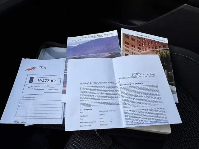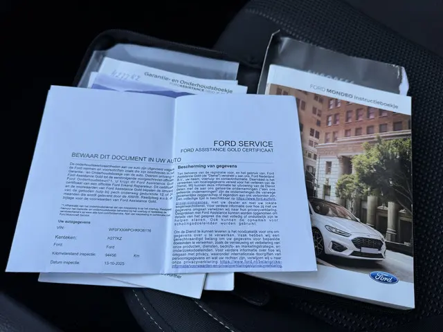 Zodra u naar de 'R' schakelt, gaat de achteruitrijcamera in werking en heeft u een perfect zicht op alles wat zich achter de auto afspeelt. Adaptive cruise control houdt de ingestelde snelheid vast en houdt automatisch afstand tot uw voorligger. Dankzij Connected Services houdt u de auto nog gemakkelijker in topconditie. Elke dag. Het comfort wordt verhoogd door de aanwezige automatische airconditioning. Het drukke verkeer eist onderweg al uw aandacht op. Daarom is het goed dat deze Ford is voorzien van diverse systemen die u assisteren tijdens de rit. Een automatisch inschakelbare verlichting neemt het waar als het donker wordt of gaat schemeren, en schakelt dan automatisch de verlichting in. Op dezelfde manier "ziet" de regensensor de eerste spatjes regen en schakelt dan de ruitenwissers in, en als het harder gaat regenen zet hij de ruitenwissers ook in een snellere stand. Wat u ook in deze auto kunt vinden zijn dashboard met spraakbediening, full map navigatiesysteem, DAB ontvangst, keyless entry, automatisch dimmende binnenspiegel en lederen stuur.