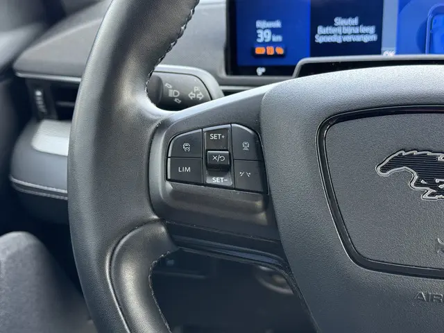 De nieuwste veiligheidssystemen komen in deze Ford Mustang Mach-E samen. De actuele snelheidslimiet, een inhaalverbod en andere verkeersborden. De verkeersborddetectie ondersteunt u tijdens elke rit. Met het Lane-keeping systeem komt u nooit per ongeluk buiten de rijstrook. Op een kop-staartbotsing zit niemand te wachten. Daarom is de forward collision warning onderweg constant alert en berekent via een sensor de veilige afstand tot voorliggers. Dankzij veiligheidsvoorzieningen als dodehoekdetectie, vermoeidheidsherkenning, autonoom remsysteem en bandenspanningcontrolesysteem, bent u steeds veilig onderweg.