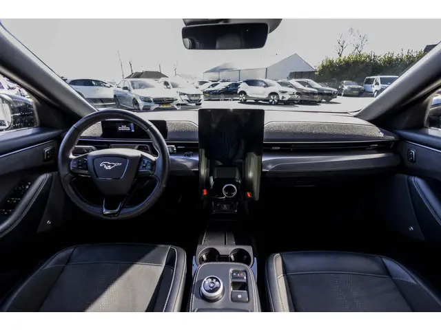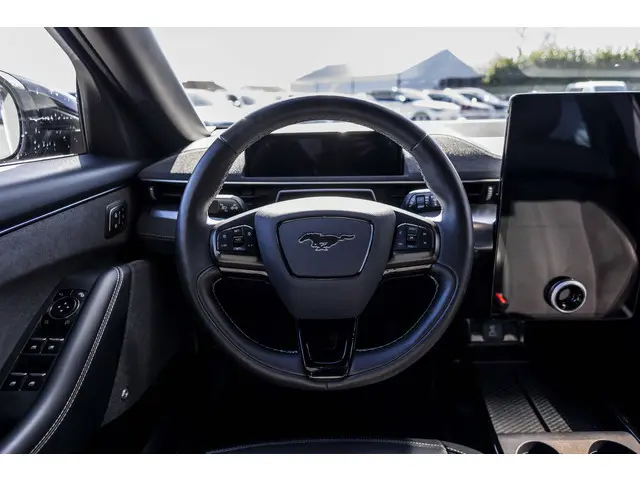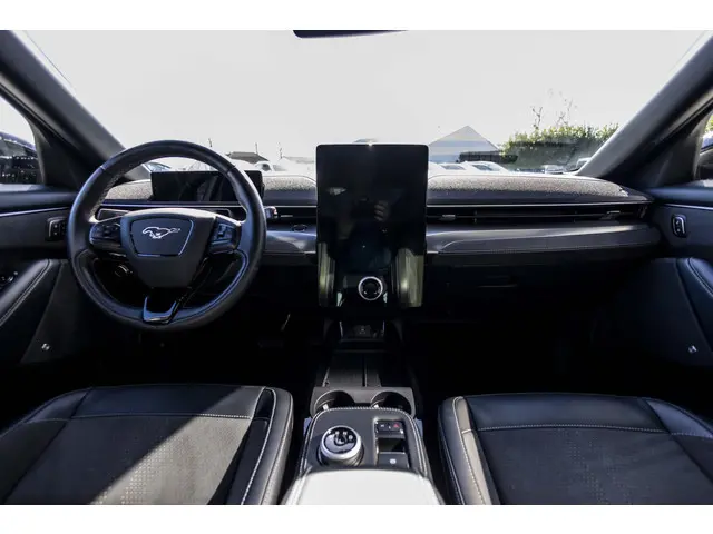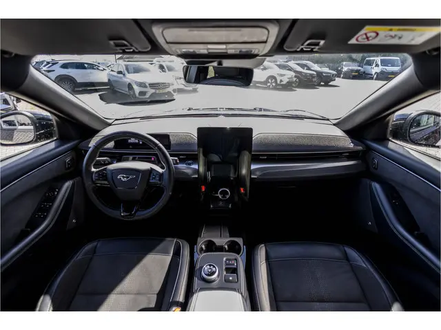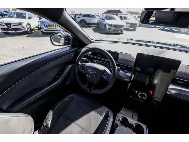 Herkenbaar design gaat bij Ford samen met maximaal rijplezier. Als u van autorijden houdt, dan zit u met deze Mustang Mach-E beslist goed. Geruisloos genieten tegen lage kosten? Dan is deze elektromotor iets voor u! De krachtige motor geeft deze Ford uitstekende prestaties. Deze Ford Mustang Mach-E is luxe afgewerkt. Kijk maar naar het lederen interieur! U past de stoelen moeiteloos aan, ze zijn elektrisch in te stellen en hebben bovendien een geheugen. Een handige voorziening op deze auto is de elektrische achterklep die u op afstand kunt openen. Aan een fijn opwarmertje in de kille dagen is gedacht, in de vorm van een verwarmd stuurwiel. Ook 20 inch lichtmetalen velgen, Full LED koplampen, adaptief dempingsysteem, geluidsisolerende ramen, zwarte hemelbekleding en neerklapbare achterbank zijn aan boord.Het eigentijdse interieur wordt natuurlijk helemaal volmaakt met het digitale dashboard. Het gebruik van de 360 graden camera op deze auto helpt u bij het navigeren door lastige rijbanen en het drukke stadsverkeer. Met adaptive cruise control houdt de auto zelfstandig afstand tot uw voorligger. Een veiligheidsverhogende optie waarmee u comfortabel onderweg bent. Met Connected Services wordt iedere rit nóg veiliger. Als belangrijke extra geldt zonder twijfel het high performance audiosysteem met topkwaliteit geluidsweergave. Deze auto is voorzien van dashboard met spraakbediening, full map navigatiesysteem, kruisend verkeer detectie, automatische airconditioning, draadloos opladen en DAB ontvangst.