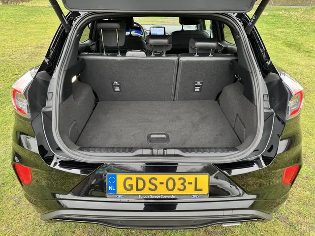 Wil je comfortabel, zuinig en ruim? De bijzonder complete Puma Ecoboost Hybrid in ST-Line X uitvoering heeft het allemaal. Ga zitten en geniet!Deze zeer mooie en geavanceerde Ford Puma is van vele opties voorzien, waaronder: navigatie, adaptieve cruise control, airconditioning (automatisch), achteruitrijcamera, LED koplampen, LED achterlichten, Keyless entry, Elektrisch bedienbare achterklep, volledig LCD instrumentenpaneel, parkeersensoren voor en achter, automatisch inparkeren, SYNC + voice control, draadloos telefoon opladen, Bang & Olufsen Premium Audio, dode hoek detectie, 17" two-tone lichtmetalen velgen, rode stiksels in de bekleding en stuurwiel, unieke ST-Line accenten, DAB+ radio, lederen/stof bekleding, zwarte hemelbekleding, Apple Carplay/Android Auto, enz. enz.