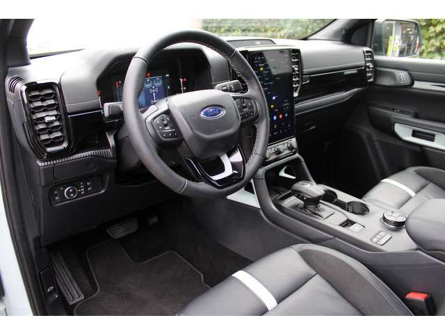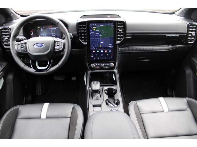 Ben je klaar voor het serieuze werk? Deze Ford Ranger Stormtrak PHEV uit 2025 combineert kracht, luxe en duurzaamheid in één indrukwekkend pakket. Met slechts10.000 kilometer op de teller is deze hybride pick-up praktisch nieuw en direct klaar voor avontuur. Dankzij de krachtige 281 pk sterke aandrijflijn, de soepele 10-traps automaat en de intelligente vierwielaandrijving is geen terrein te gek. Of je nu op pad gaat voor werk of plezier, deze Ranger doet het allemaal met stijl én comfort.Binnenin vind je alles wat je van een moderne premium auto mag verwachten: een groot 12 inch infotainmentscherm met het nieuwste SYNC IV-systeem, navigatie, een luxe lederen interieur met verwarmbare stoelen, dual zone climate control en sfeervolle LED-verlichting. Ook aan veiligheid en gemak is gedacht, met onder andere adaptive cruise control, parkeersensoren voor en achter, een achteruitrijcamera, dodehoekdetectie en keyless entry.