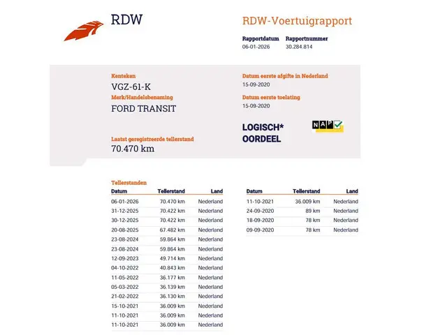 Voertuiggegevens van deze Ford Transit