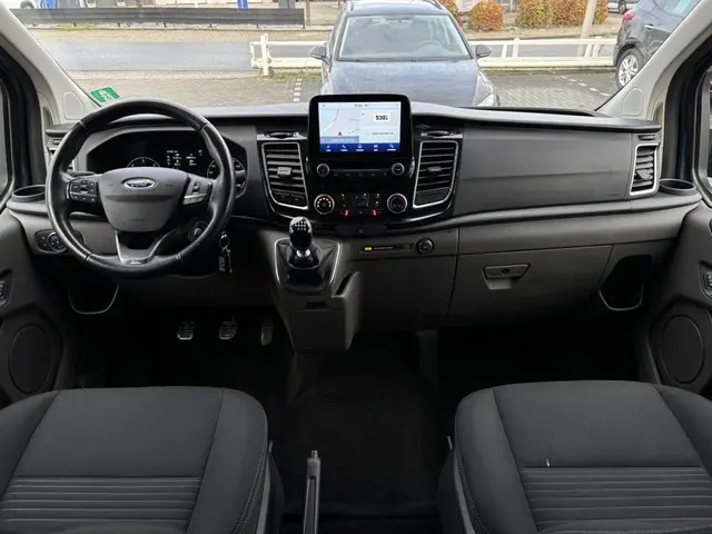 Nette luxe Ford Transit Custom 300 2.0 TDCI L2H1 Dubbel Cabine 131pk met Trekhaak, Bluetooth, Cruise control, Buitenspiegels elektrisch verstelbaar, Boordcomputer, Lichtmetalen velgen 16 inch, Parkeersensoren voor en achter, Regensensor, Rijstrooksensor, Verwarmde voorstoelen, Verwarmde voorruit, Airco, Navigatie en Achteruitrijcamera !!Onderhoudsboekjes: aanwezig, ingevuld en gestempeld
