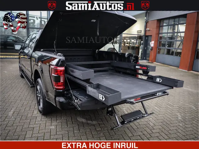 Ford F-150 150 BLACK OPS | 5.0 V8 406PK | 360 CAMERA | UITLAAT KLEP | BEDSLIDE | CREW CAB | LEDER | CREW CAB | DUBBELE CABINE | 5 PERSOONS | DC | GRIJSKENTEKEN |