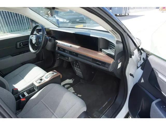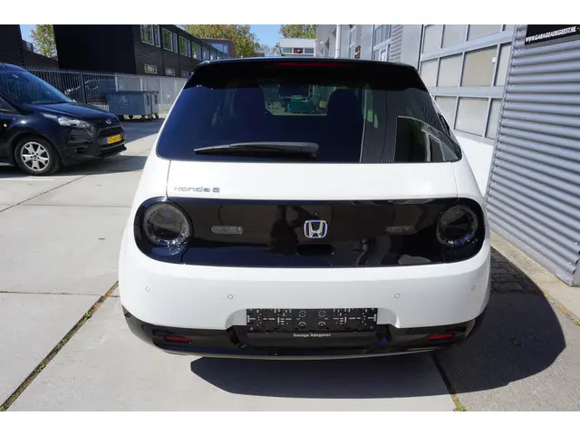 Intelligente technologie. Geen emissies en een fantastisch rijgedrag. Welkom in de Honda e. De elektromotor is stil en schoon. En met een verrassend grote actieradius! De krachtige motor geeft deze Honda uitstekende prestaties. Op koude en donkere dagen zijn de verwarmbare voorstoelen een uitkomst. Het glazen panoramadak biedt u een breed zicht op de omgeving. Tot de uitrusting van deze Honda behoren ook 17 inch lichtmetalen velgen, LED koplampen, donker getint glas achter, LED-achterlichten en verstelbare lendensteunen.Voor een goed en duidelijk overzicht onderweg is het digitale dashboard uitermate slim ingedeeld. Of u nu achteruit rijdt, parkeert of een smalle straat inslaat, de 360 graden camera op deze auto, mogelijk gemaakt door vier camera's, biedt een perfect beeld van uw omgeving. Adaptive cruise control is een comfortabele en veilige optie. Het systeem reguleert de snelheid en houdt automatisch afstand tot uw voorligger. Dankzij Connected Services houdt u de auto nog gemakkelijker in topconditie. Elke dag. Het high performance audiosysteem staat garant voor een levendige en krachtige muziekweergave. Deze auto is voorzien van full map navigatiesysteem, achteropkomend verkeer waarschuwing, automatische airconditioning, lederen sportstuur, DAB ontvangst en regensensor.