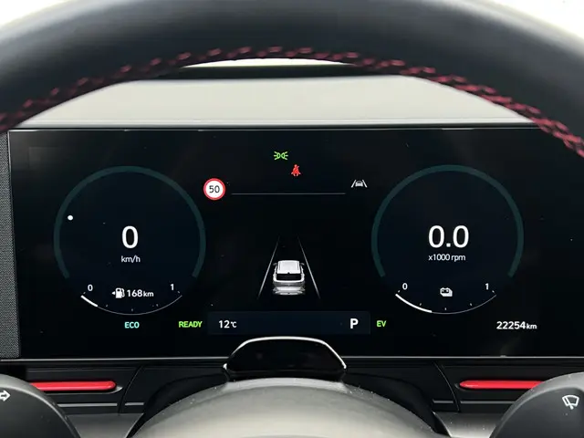 De Hyundai Kona is ook voorzien van ADAS. Deze Advanced Driver Assistence Systems fungeren als extra ogen en oren: ze houden voor u de weg in de gaten en grijpen in wanneer dat nodig is. Wat deze auto ook kan, is lezen. Hij 'leest' voor u de verkeersborden tijdens de rit en attendeert u erop door ze op het dashboard te projecteren. Het Lane-keeping systeem garandeert dat u zich niet onverhoeds buiten de lijnen van de rijstrook begeeft. Als een fietser of andere weggebruiker zich net buiten uw zichtveld naast de auto bevindt, slaat de actieve dodehoekdetectie meteen alarm. Verder is deze auto uitgerust met hill hold functie, vermoeidheidsherkenning, autonoom remsysteem en bandenspanningcontrolesysteem.