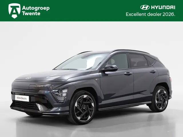 Bent u op zoek naar een ruime en krachtige elektrische SUV met een luxueuze uitstraling? Dan is de Hyundai Kona Electric N Line business 64.8 kWh uit 2026 wellicht de perfecte auto voor u. Met zijn grijze metallic lak en stoere uitstraling is deze Hyundai een echte eyecatcher op de weg.Deze Hyundai Kona Electric is voorzien van een krachtige elektrische aandrijving met een vermogen van maar liefst 218 PK. Hiermee ervaart u niet alleen een soepele en stille rijervaring, maar bent u ook nog eens zeer milieubewust bezig. Met een kilometerstand van slechts 999 kilometer is deze auto zo goed als nieuw en kunt u vele kilometers zorgeloos rijden.