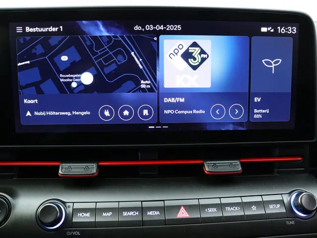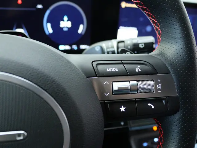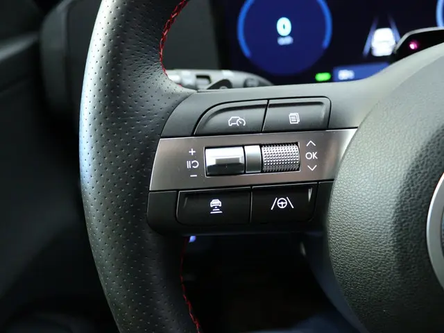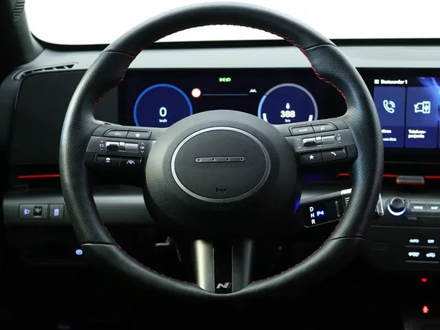 Het stuur van de Hyundai Kona N Line Edition 65.4 kWh is bekleed met hoogwaardig leder, wat niet alleen zorgt voor een luxe uitstraling, maar ook voor een comfortabele grip tijdens het rijden. Dankzij de keyless start-functie hoef je nooit meer te zoeken naar je sleutels - gewoon instappen en wegrijden. Bovendien zorgen de hoofd airbags voorin de auto voor extra bescherming in geval van een aanrijding, wat bijdraagt aan de veiligheid van jou en je passagiers.