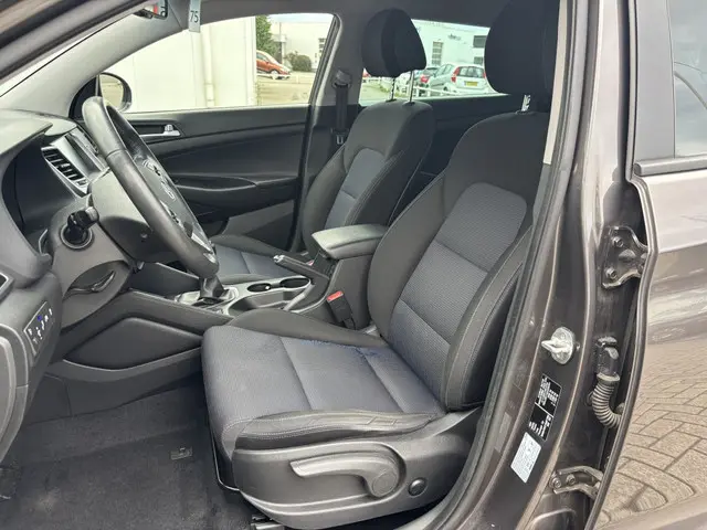 Zeer nette Hyundai Tucson 1.6 Gdi Advantage met Camera, Navigatie, Dode hoek detectie, 17 inch Lichtmetalen velgen, Stuur en stoelverwarming, Radio/Mp3/Cd-speler, Isofix, Buitenspiegels elektrisch verstelbaar + inklapbaar, Spraakbediening, Bekerhouders, Usb/12 Volt aansluitingen, Bluetooth, Elektrische ramen voor en achter, Regensensor, Climate Control, Afdaal assistent, Parkeersensoren voor en achter en Cruise Control !!Onderhoudsboekjes: aanwezig, ingevuld en gestempeld