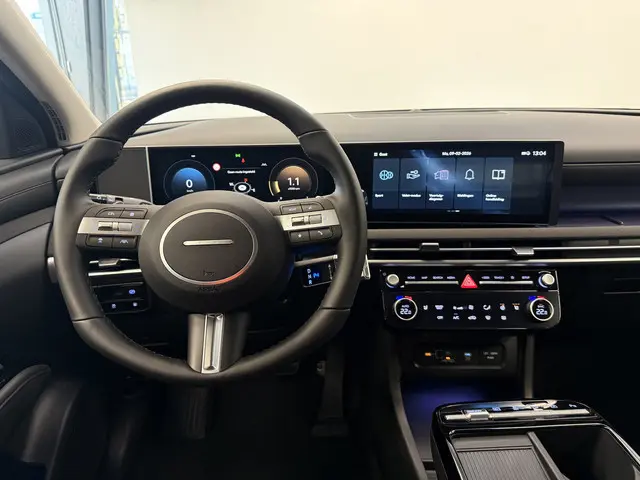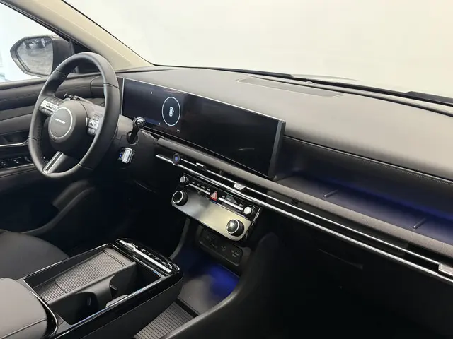 Met zijn ruimte en zijn prestaties is dit de auto die bij u past. Deze Hyundai Tucson heeft 65 kilometer gelopen. De uitstekende prestaties van deze auto komen van de viercilinder benzinemotor en de automatische transmissie. Deze Hyundai Tucson heeft verwarmbare voorstoelen, voor zowel bestuurder als bijrijder. De achterklep opent automatisch met een druk op de knop. Handig als u met volle handen staat. Ook 19 inch lichtmetalen velgen, LED koplampen, halflederen bekleding, geluidsisolerende ramen, trailer assistent en dakspoiler zijn aan boord.Overzicht, informatie en functionaliteit: dat biedt het digitale dashboard. Kommaar-kommaar-kommaar, aldus de achteruitrijcamera. Iedere centimeter vrije ruimte komt haarscherp in beeld. Schadevrij inparkeren maar! Met adaptive cruise control houdt deze auto automatisch afstand tot uw voorligger. De aanwezige file assistent meet de afstand tot uw voorligger en zorgt voor een veilige afstand. Staat het voor u opeens stil? Dan zorgt het systeem dat de auto ook stopt. Het infotainmentsysteem bedient u met uw vingers of met uw stem, met dank aan de geïntegreerde stembediening. De Hyundai is standaard voorzien van: connected drive services, premium audiosysteem, navigatiesysteem, automatische airconditioning, schakelpaddles aan het stuur en draadloos opladen.