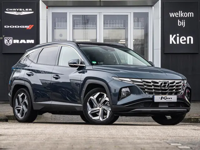 De Hyundai Tucson Premium Sky is een SUV die moderne techniek en comfort op hoog niveau combineert. Deze plug-in hybride uitvoering met vierwielaandrijving biedt het beste van twee werelden: kracht en souplesse wanneer u dat wenst, en elektrisch rijden voor de dagelijkse ritten. In de stijlvolle Dark Teal metallic lak komt het krachtige design van de Tucson volledig tot zijn recht, met scherpe lijnen, uitgesproken LED-verlichting en 19 inch lichtmetalen velgen.De 1.6 T-GDI plug-in hybride aandrijflijn levert samen 265 pk en zorgt voor krachtige, maar verfijnde prestaties. Dankzij de elektrische ondersteuning rijdt de Tucson stil en efficiënt, terwijl de 4WD-aandrijving extra zekerheid biedt onder alle omstandigheden. Of het nu gaat om woon-werkverkeer of langere ritten, deze Tucson voelt altijd stabiel en comfortabel aan. Adaptieve cruise control met Stop & Go, rijstrooksensor met correctie en dodehoekdetectie ondersteunen u actief onderweg.
