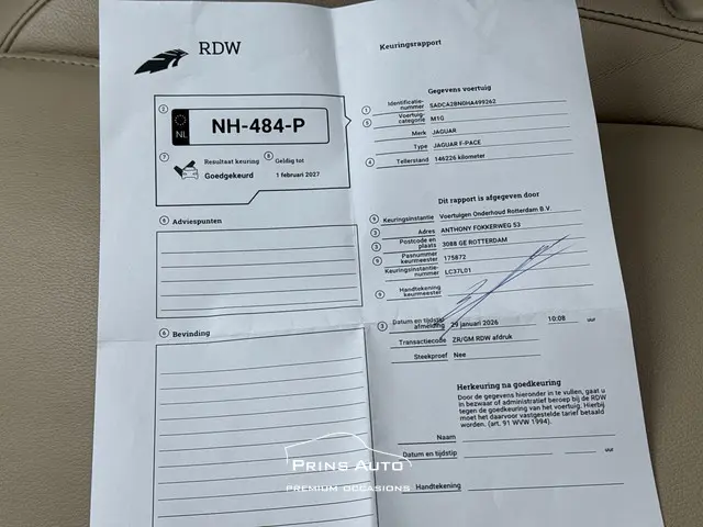 Deze prachtige Jaguar F-PACE 2.0 Portfolio AWD 20d uit 2017 is een stijlvolle en bijzonder complete SUV met slechts 146.319 kilometer op de teller. Het betreft een origineel Nederlands geleverde auto, uiteraard met NAP, wat garant staat voor een logisch verklaarbare kilometerstand en een transparante historie. De Portfolio-uitvoering staat bekend als een van de meest luxe varianten binnen het F-PACE gamma en dat merk je aan alles.Onder de motorkap ligt de krachtige en efficiënte 2.0 dieselmotor in combinatie met AWD, wat zorgt voor uitstekende prestaties én optimale grip onder alle omstandigheden. Het panoramische glazen dak geeft het interieur een extra ruimtelijk en licht gevoel, terwijl het hoogwaardige Meridian audiosysteem garant staat voor een indrukwekkende geluidsbeleving. Dankzij de achteruitrijcamera manoeuvreer je moeiteloos in elke situatie en de stoelverwarming zorgt ervoor dat je ook tijdens koude dagen geniet van maximaal comfort.