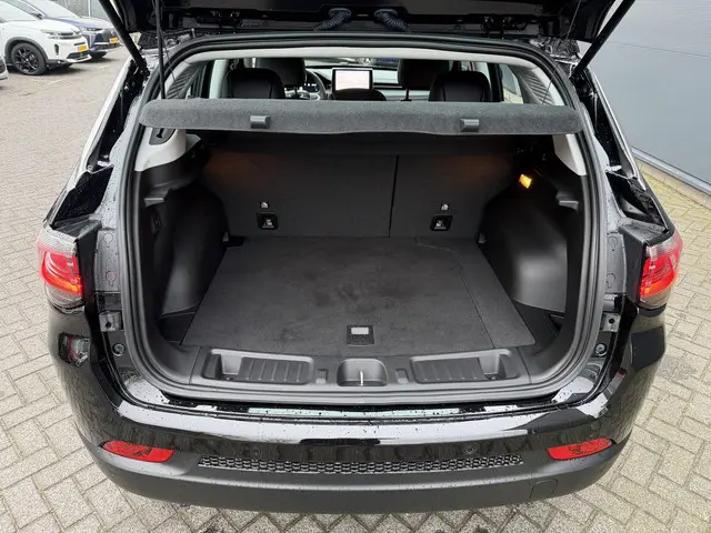 Zoals u mag verwachten van deze Jeep Compass is hij uitgerust met een reeks aan actieve veiligheidssystemen. In het instrumentarium laat de verkeersborddetectie de actuele verkeersborden zien. Ongemerkt buiten de rijstrook raken? Nee hoor, het Lane-keeping systeem waarschuwt en corrigeert. Deze Jeep Compass blijft altijd alert. Zo wordt gebruik gemaakt van forward collision warning. Bij het mogelijke risico op een aanrijding met een voertuig voor u, slaat het systeem alarm. In deze Jeep vinden we verder een dodehoekdetectie, hill hold functie, vermoeidheidsherkenning, autonoom remsysteem en bandenspanningcontrolesysteem.