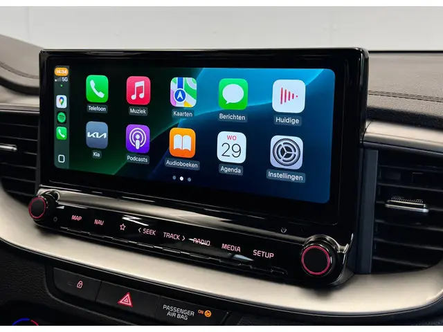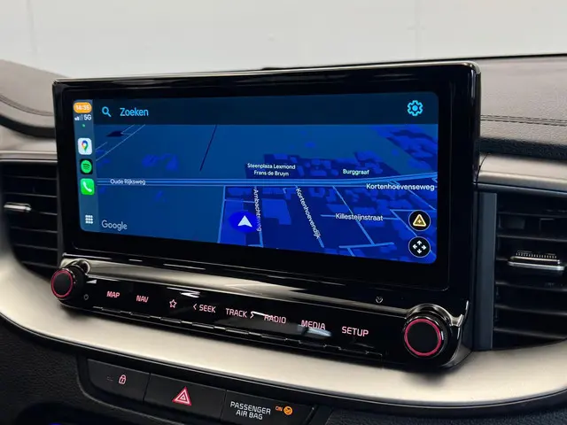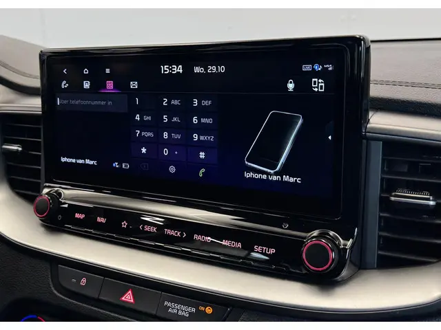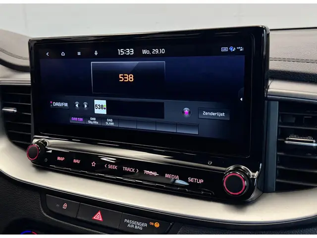 Met behulp van de achteruitrijcamera kunt u zo strak inparkeren als u maar wilt! Appen met uw auto? Geen probleem. U kunt van overal contact opnemen, de functies controleren en activeren. U bedient 'm met remote services. Een goede veiligheidsvoorziening is de spraakbediening en stuurbediening voor belangrijke functies. De auto is natuurlijk voorzien van een full map navigatiesysteem en het audiosysteem biedt glasheldere geluidskwaliteit dankzij DAB-ontvangst. Of het buiten nu warm is of koud, dankzij electronic climate control is het binnen altijd behaaglijk. Achter het stuur van deze Kia bent u niet alleen. De auto kijkt als het ware met u mee tijdens de rit. De regensensor schakelt de ruitenwissers in als het nodig is en de automatisch inschakelbare verlichting doet de lichten voor u aan. Ook is de Kia uitgerust met: automatisch dimmende binnenspiegel, lederen stuur, centrale deurvergrendeling met afstandsbediening en lederen versnellingspook.
