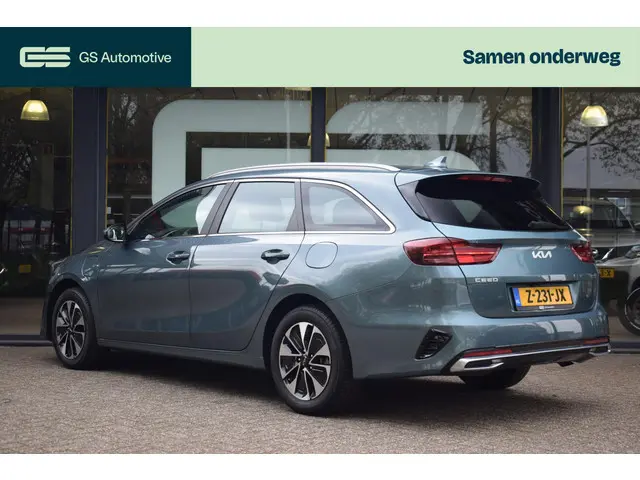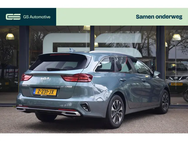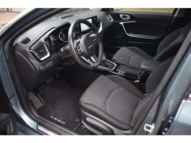 Niet voor niets is Kia topfavoriet in Nederland. Kenmerkende design en een gunstige prijs. Movement that inspires. Door de combinatie van brandstof- en elektromotor rijdt u met deze hybride Kia Ceed Sportswagon een stuk voordeliger. En het scheelt in uitstoot bovendien. Ook 16 inch lichtmetalen velgen, LED koplampen, in hoogte verstelbare passagiersstoel, in delen neerklapbare achterbank, LED-achterlichten en verstelbare lendensteunen horen tot de voorzieningen op deze auto.Afstand schatten bij het achteruitrijden? Niet nodig. U weet het precies, dankzij de achteruitrijcamera. Met adaptive cruise control houdt deze auto automatisch afstand tot uw voorligger. De ingebouwde file assistent is een echte helper als het vaststaat onderweg. Het systeem meet ruimte tot de auto vóór u permanent en activeert zelfs de remmen als uw voorligger stopt. Als u 'm vraagt 'hoe gaat het?' geeft deze auto zelf het antwoord. Via de app op uw smartphone. U checkt de meters waar u maar wilt, of activeert diverse functies alvast. Kies de muziek waarvan u houdt, dankzij de DAB-radio klinkt het altijd geweldig. Intussen bedient u het audiosysteem en het full map navigatiesysteem met de knoppen op het stuur of met uw stem. De Kia is standaard voorzien van: electronic climate control, regensensor, keyless entry, automatisch dimmende binnenspiegel, lederen stuur en lederen versnellingspook.