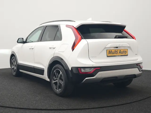 Kia Niro 1.6 GDi Dynamic Plus Line Plug In Hybrid 142pk Dealer O.H PHEV | Adaptive Cruise | Camera | Lederen Sportstoelen Verwarmd | Widescreen Navigatie | Blis | Keyless | Apple Carplay | Lane Assist | Virtual | DAB | 16" L.M |U rijdt gemakkelijk, comfortabel en zonder zorgen met deze Kia Niro. De toekomst is hybride: de combi van elektromotor en verbrandingsmotor maakt deze auto extra aantrekkelijk en voordelig in gebruik. Behaaglijk onderweg zijn? Als bestuurder geniet u van de verwarmbare voorstoelen. Net als uw bijrijder! Zijwaartse g-krachten worden solide opgevangen door de sportstoelen. De elektrisch bedienbare achterklep opent met een druk op de knop. Fijn plusje, zeker in de kille dagen, is het verwarmd stuurwiel. Natuurlijk behoren 16 inch lichtmetalen velgen, LED koplampen, donker getint glas achter, in delen neerklapbare achterbank en LED-achterlichten ook tot de uitrusting van deze complete auto.