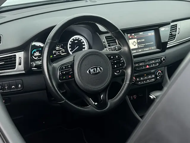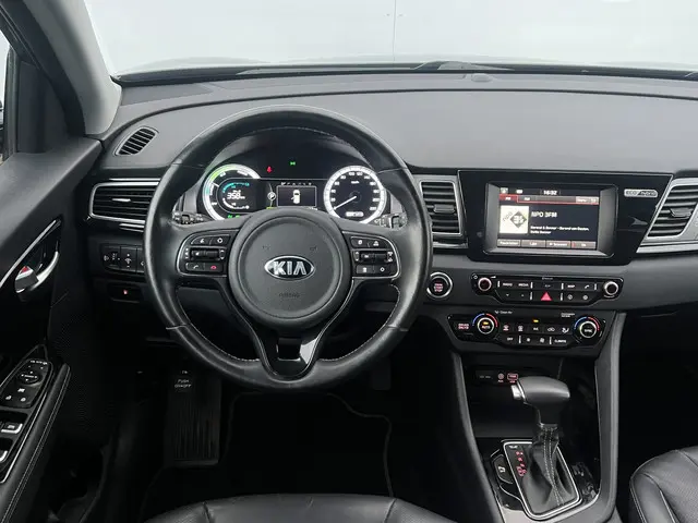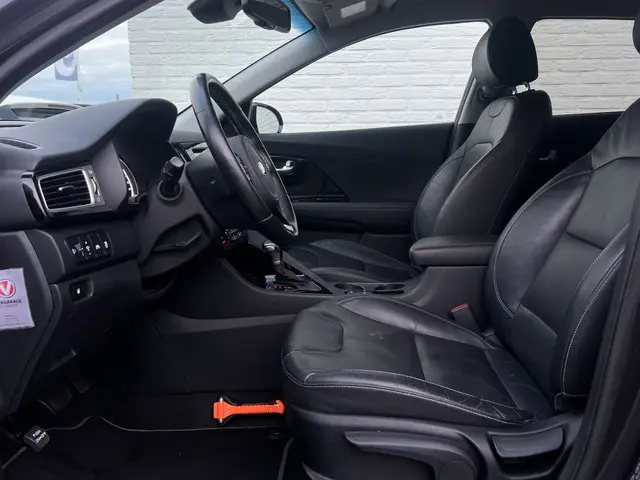 Hij zorgt voor een ontspannen rijervaring, deze Kia Niro. Het is een dealeronderhouden auto uit 2017, op de teller staat een kilometerstand van 84637. In deze auto vindt u een benzinemotor en een automatische transmissie. Leren bekleding versterkt de topklasse uitstraling van het interieur. Er is stoelverwarming aanwezig in deze auto. Tot de uitrusting behoren ook LED-dagrijverlichting, donker getint glas achter en LED-achterlichten.De achteruitrijcamera laat duidelijk zien hoeveel ruimte u nog heeft bij het inparkeren. Als u de adaptive cruise control inschakelt, regelt de auto zelf de snelheid en de afstand tot de auto voor u. Ook praktisch: deze auto is voorzien van een eigen navigatiesysteem. Nooit meer te warm of te koud. De electronic climate control zorgt altijd voor de temperatuur die u kiest. Het audiosysteem laat zich gemakkelijk bedienen met de audiobediening op het stuurwiel. Ook is de Kia uitgerust met: keyless entry, centrale deurvergrendeling met afstandsbediening en verstelbaar stuur.