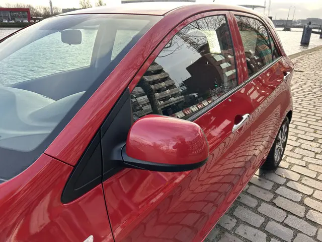 Vergis u niet met deze Kia Picanto. Hij lijkt klein, maar het is een rappe dondersteen. Hij rijdt lekker, deze Kia. Pittig ook. Met de krachtige xenonverlichting rijdt u ontspannen in het donker. In deze Kia profiteert u onder andere ook van: 14 inch lichtmetalen velgen en donker getint glas achter.Een handige optie is de achteruitrijcamera. Achteruitrijden, inparkeren en manoeuvreren gaat gemakkelijker dan ooit. Het full map navigatiesysteem zorgt ervoor dat u snel en ontspannen op uw bestemming aankomt. Dankzij electronic climate control is het interieur behaaglijk warm of verfrissend koel. Het geluidssyteem in deze Kia Picanto is regelbaar met behulp van de audiobediening op het stuur. In deze Kia kunt u zich concentreren op het verkeer, terwijl de auto de omgeving voor u in de gaten houdt. Een automatisch inschakelbare verlichting zorgt dat de verlichting aangaat als het donkerder wordt - in tunnels bijvoorbeeld - en de regensensor schakelt de ruitenwissers in als het nodig is. U hoeft er niets aan te doen. De Kia is standaard voorzien van: cruise control, buitentemperatuurmeter, centrale deurvergrendeling met afstandsbediening, bagage afdekhoes, boordcomputer en bekerhouder.