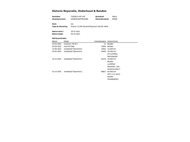 Voertuiggegevens van deze Kia Picanto