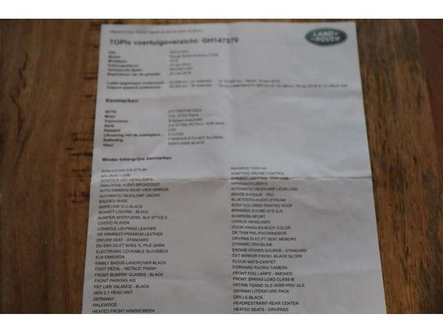 Met de 360 graden camera, verzorgd door vier camera's, wordt rijden in drukke steden of het navigeren in nauwe ruimtes een koud kunstje. Dankzij Connected Services houdt u de auto nog gemakkelijker in topconditie. Elke dag. De high-end technologie van het high performance audiosysteem staat garant voor geluid van het hoogste niveau. De achteropkomend verkeer waarschuwing bewaakt de afstand tot achterliggers en geeft een signaal als er te weinig ruimte is. Met automatische airconditioning hoeft u alleen de gewenste temperatuur in te stellen. Het systeem doet de rest. U bent in deze Land Rover ook voorzien van navigatiesysteem met harde schijf, cruise control, keyless entry, dvd-systeem, automatisch dimmende buitenspiegels en lederen stuur.