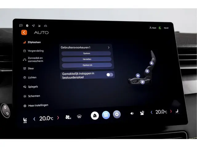 Qua comfort is de uitrusting verrassend prettig. De auto beschikt over een elektrisch verstelbare bestuurdersstoel, inclusief geheugen, zodat je altijd snel in de juiste zitpositie zit. De voorstoelen zijn verwarmd, wat in koude maanden direct merkbaar comfort biedt. Boven je bevindt zich het grote elektrisch glazen panorama-dak, wat veel licht en ruimtelijkheid in het interieur brengt.