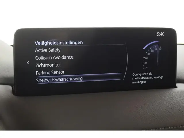 - Mazda Radar Cruise Control (MRCC): houdt ingestelde snelheid aan en bewaart gewenste afstand tot voorganger (incl. stop & go-functie)