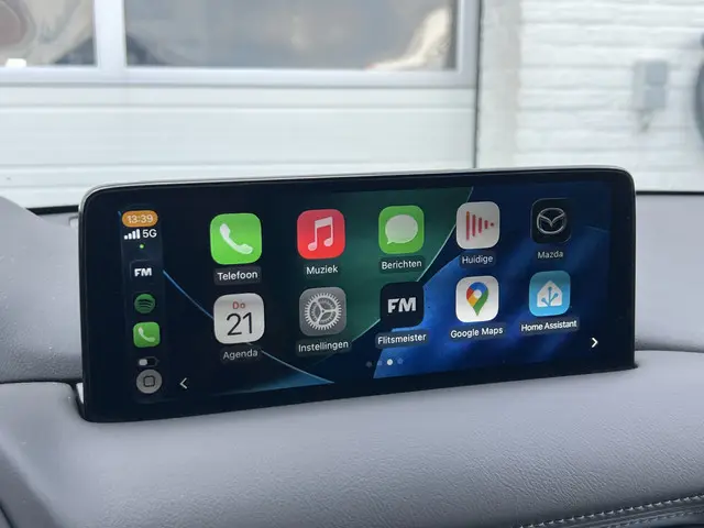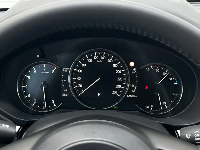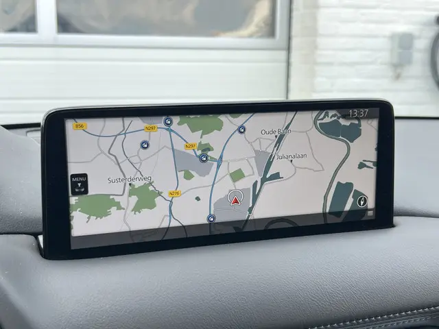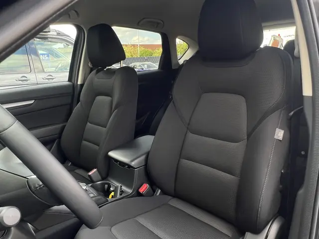 Zoals u mag verwachten van deze Mazda CX-5 is hij uitgerust met een reeks aan actieve veiligheidssystemen. Het Top Gun-gevoel komt van de head-up display, die alle dashboardinfo in het rijzicht projecteert. Een belangrijke bijdrage aan de veiligheid onderweg levert de verkeersbord-detectie. Keep your lane? Het Lane-keeping systeem zorgt er automatisch voor. Verder is deze auto uitgerust met dodehoekdetectie, forward collision warning system, hill hold functie, brake assist, vermoeidheidsherkenning en bandenspanningcontrolesysteem.